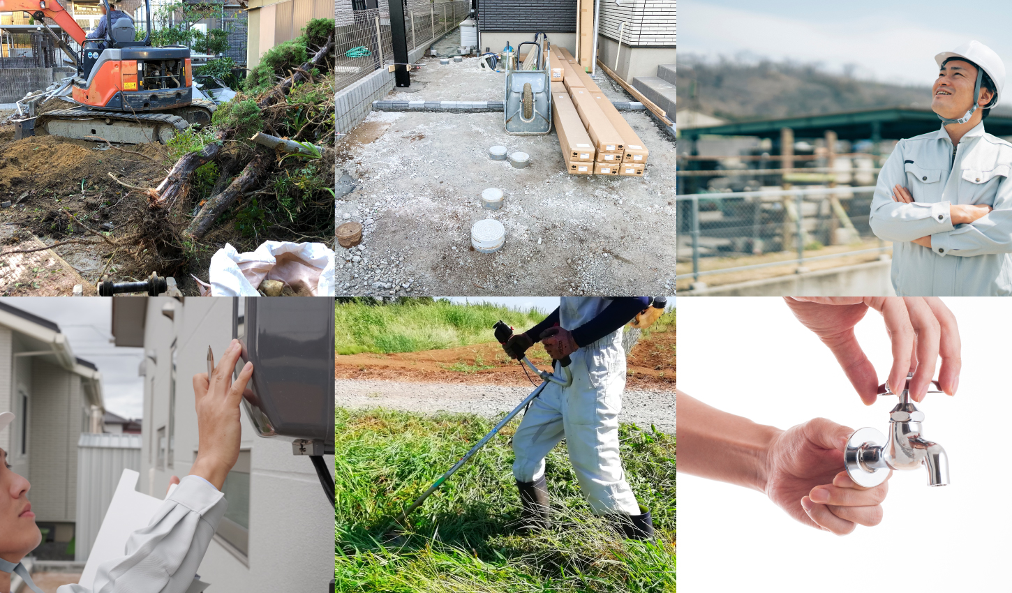 外構工事の詳細住宅の外構工事、解体工事、土地の整地、電気工事、水道工事芝刈りなどのお家にまつわる事はエイシン企画へ